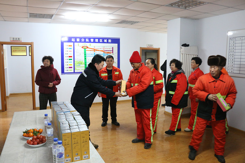 中吉特檢自去年開展扶貧幫困系列公益活動(dòng)以來,一直持續(xù)關(guān)注社會(huì)民生。入冬之后,天氣驟冷,環(huán)衛(wèi)工人一直堅(jiān)守自己的工作崗位,更需要社會(huì)的關(guān)愛和理解。1月25日,在寬城區(qū)環(huán)境衛(wèi)生保潔管理處王敏副處長(zhǎng)的協(xié)助安排下,公司員工帶著150個(gè)保溫杯來到了站前分隊(duì),親手將保溫杯送到了環(huán)衛(wèi)工人的手中。給環(huán)衛(wèi)工人送來了關(guān)愛和慰問。
